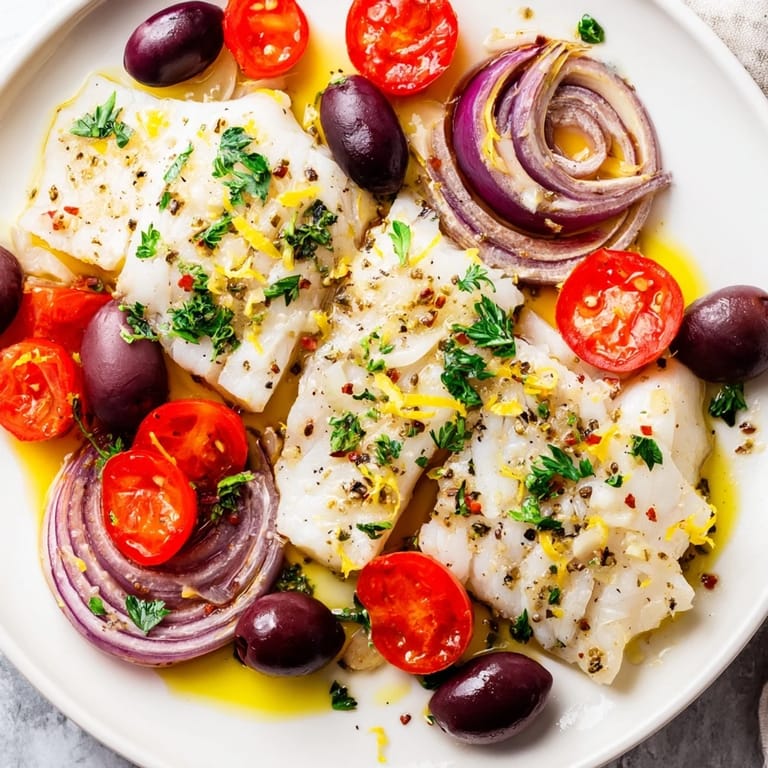 Save I was standing in front of the fish counter on a Tuesday evening, tired and uninspired, when the fishmonger held up a beautiful cod fillet and said it would be perfect for a one-tray bake. I grabbed tomatoes and olives on the way out, tossed everything together at home, and twenty minutes later I was eating something that tasted like I'd spent an hour in the kitchen. That night changed my weeknight cooking forever.
