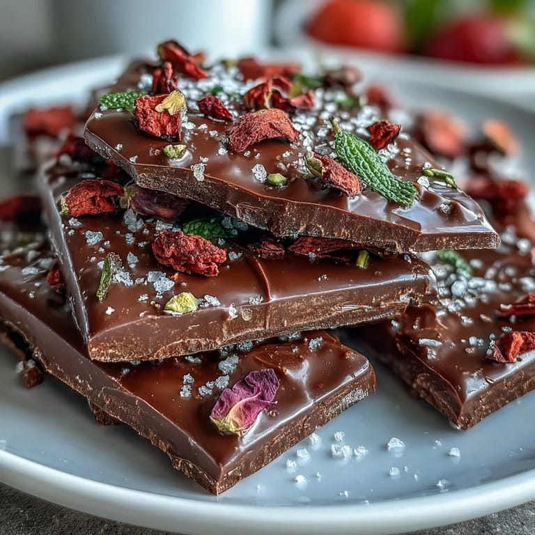 I've learned that the beauty of this bark lives in the arrangement, even though it's completely random. Sprinkle the strawberries first so they anchor everything else, then scatter pistachios for texture variation, followed by rose petals for that fragrant elegance. The sea salt goes last as a final punctuation mark that somehow makes every other flavor pop louder, a trick I borrowed from pastry chefs who understand that salt and sweet are meant to dance together.