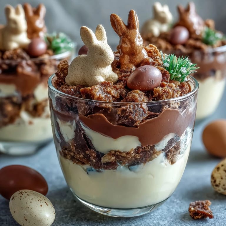 These are best assembled within a few hours of serving because the texture contrast between layers is the real star—pudding, whipped topping, and cookies all maintain their distinct personalities during that window. If you need to prep ahead, mix your pudding and layer the cups up to the cookie crumble stage, then add the bunny and final decorations right before serving to preserve that freshness. I've learned the hard way that overnight storage turns everything into a sad brown pudding soup, so same-day assembly really is the way to go.