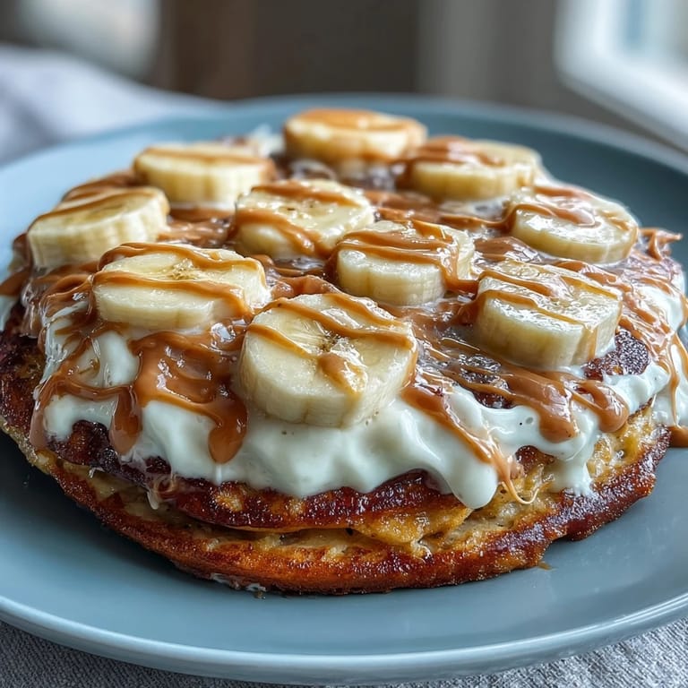 - Arrange your banana slices on top and drizzle with honey or maple syrup if you want extra sweetness. Serve immediately while the pancake base is still slightly warm and the yogurt is cool.