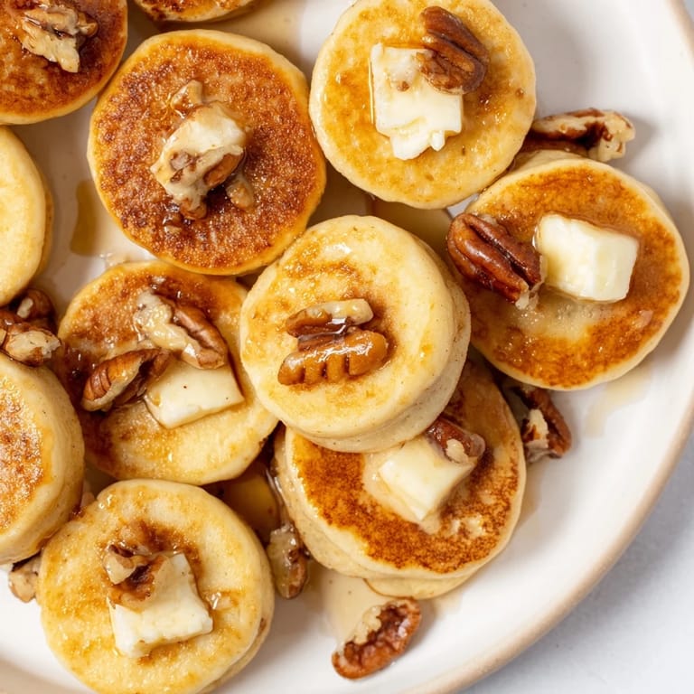 Save I discovered these little bites by accident one Sunday when I had leftover pancake batter and half a wheel of brie sitting on the counter. My friend Sarah was coming over for brunch, and I thought, why not combine them? The first batch came out of the oven puffing like golden clouds, and when I bit into one, the warm brie oozed out in the most perfect way. Now they are the first thing people ask for whenever I host brunch.