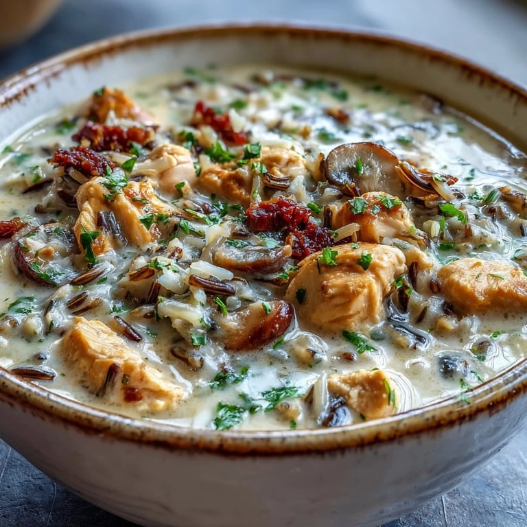 Save The aroma of simmering Parmesan Mushroom Chicken and Wild Rice Soup always takes me back to that first snowy weekend at our mountain cabin. I'd brought along a collection of ingredients with no particular plan, just the hope of creating something warming after a day of hiking. As the wind howled outside, I found myself chopping mushrooms and chicken, letting instinct guide me rather than a recipe. The earthy fragrance that filled our tiny kitchen became forever linked with the comfort of finding refuge from winter's chill.
