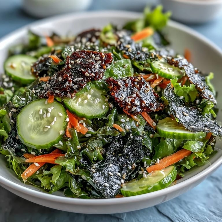Save There's something almost meditative about assembling this salad on a quiet afternoon when the kitchen feels like it belongs entirely to you. I discovered seaweed snacks tucked away in a specialty market's corner, and on impulse, grabbed a package alongside some fresh nori sheets. That single impulse led me here, crafting a salad that somehow tastes both light and deeply satisfying, with layers of umami that sneak up on your palate.