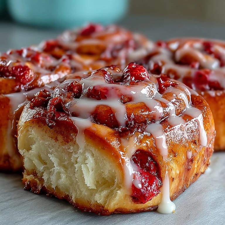 Save The smell of strawberries cooking down into jam has become my Sunday morning signal that something wonderful is about to happen in the kitchen. My kitchen window faces east, so when I'm making these rolls, the morning sun hits that bubbling pot of fruit and turns it into something glowing and alive. It started as a way to use up extra strawberries from the farmers market, but now it's the only cinnamon roll variation my family actually requests by name.