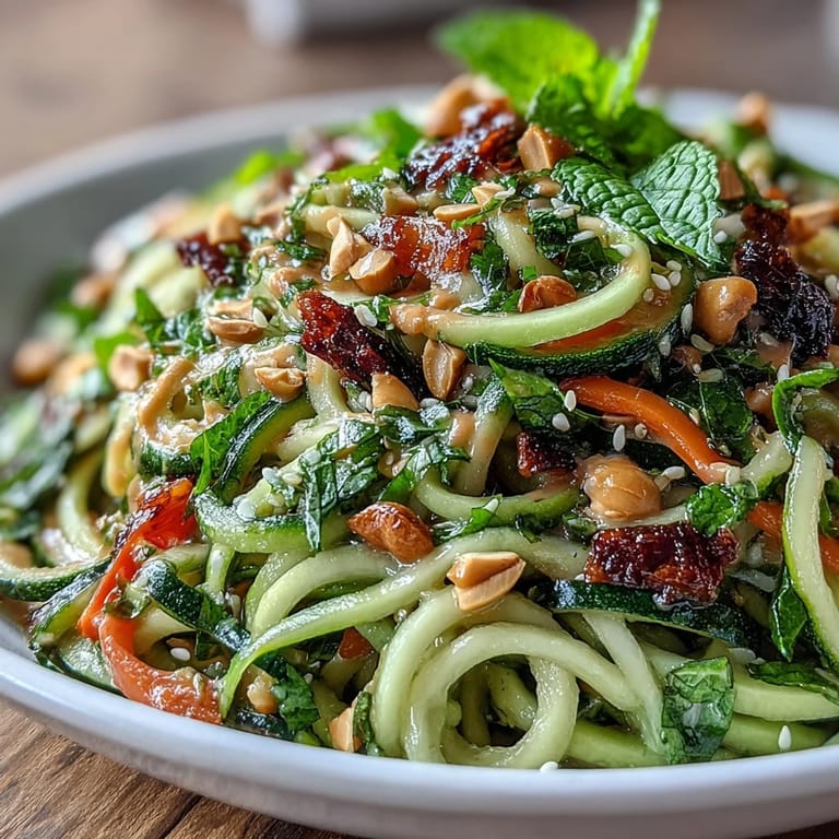 Save On a sweltering afternoon when my kitchen felt too warm for anything hot, I found myself standing at the farmers market staring at a tower of zucchini and a bundle of fresh mint. A vendor suggested spiralizing them into noodles, and something clicked. That simple conversation led me to this salad, which has become my go-to when I need something that tastes indulgent but leaves me feeling light and energized. It's the kind of dish that surprises people because it's vibrant and satisfying without any heaviness.